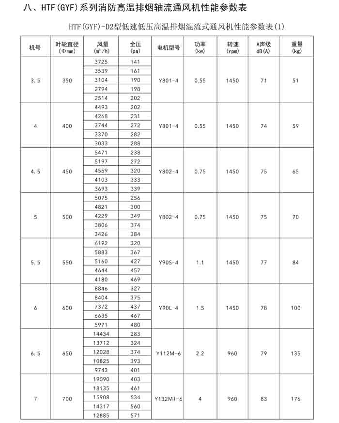 一、HTF(GYF)-I、II、III、D、G、IIG 系列消防排煙軸流風機