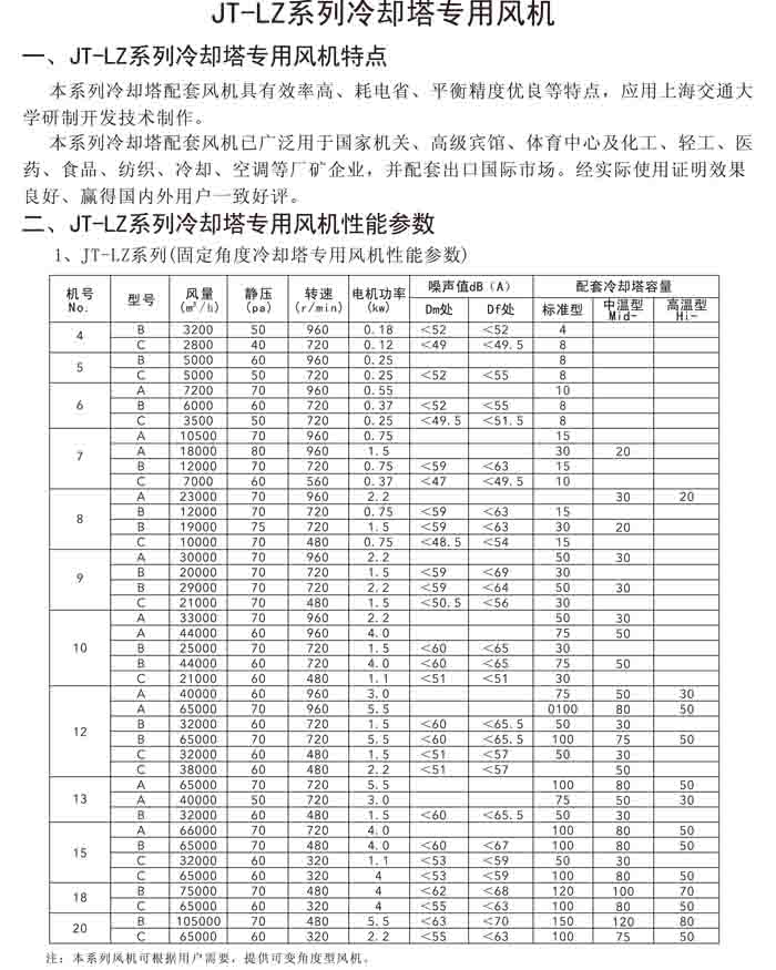 十三、JT-LZ 系列冷卻塔專用風機