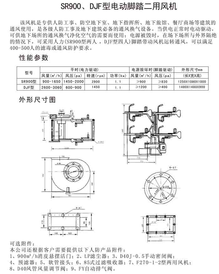 一、DJF-1、SR900 系列電動腳踏兩用風機